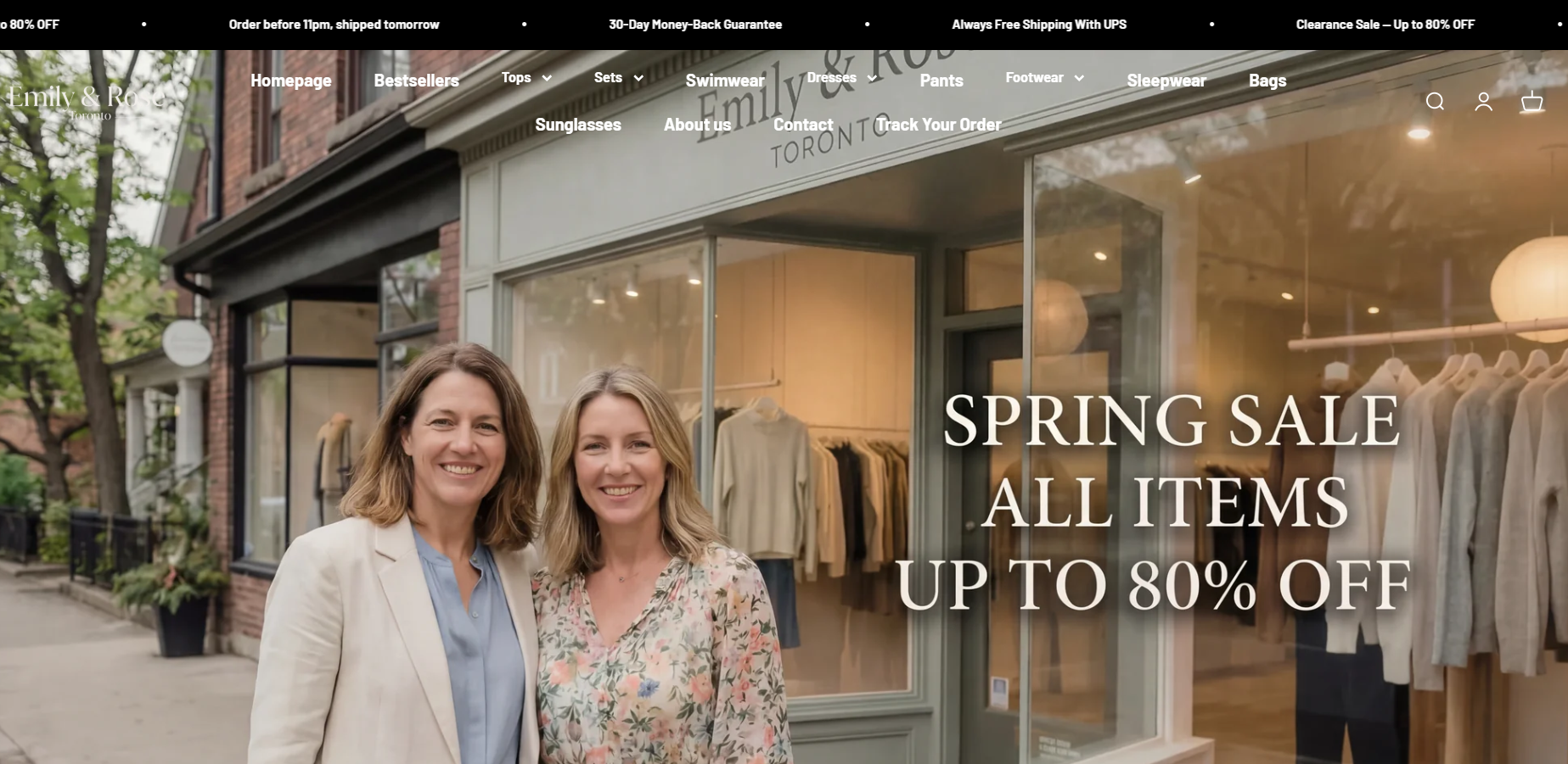 Emilyandrose-toronto.com doesn’t blast you with pop-ups or flashy banners. It’s got that quiet charm—soft colours, elegant displays, and the vibe of a cosy boutique. Right away, it feels more like a local fashion brand than some huge online retailer. The name gives it that authentic touch, and the lineup—mostly dresses, shoes, and casual wear—looks refined and inviting.