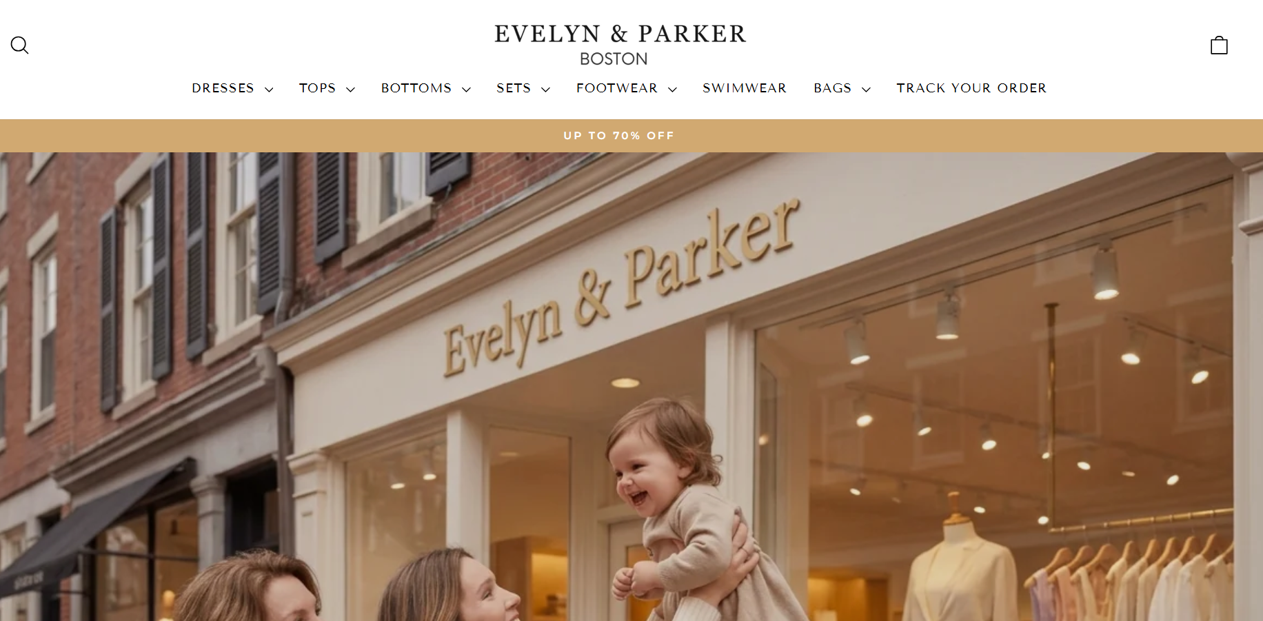 Evelynandparker.com captures your attention quickly. It’s not just selling clothes—it encourages you to believe in the story. Right away, you get warmth. There’s talk of family tradition, craftsmanship, and decades of passion. The branding feels cosy and personal, like you’re supporting a local shop, not some massive retail empire.